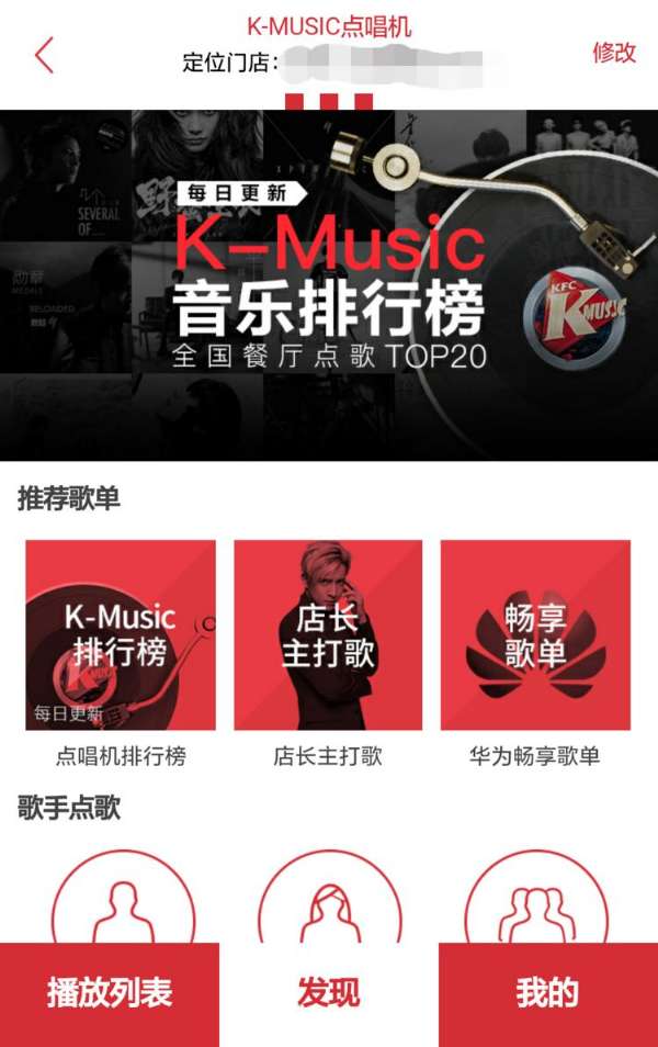 除此以外,当你打开纪念款之后,还会发现手机系统预装了肯德基的 app,而且这个 app 会比之前看到的版本多出一个“线下餐厅点歌”的新功能。登录之后,点击 K-MUSIC 并选择餐厅点歌,肯德基的 app 就会自动将你定位到最近的餐厅,你可以选择餐厅里播放的歌曲。肯德基告诉《好奇心日报》,目前餐厅点歌功能版本的 app 只有在华为应用商城才能下载。