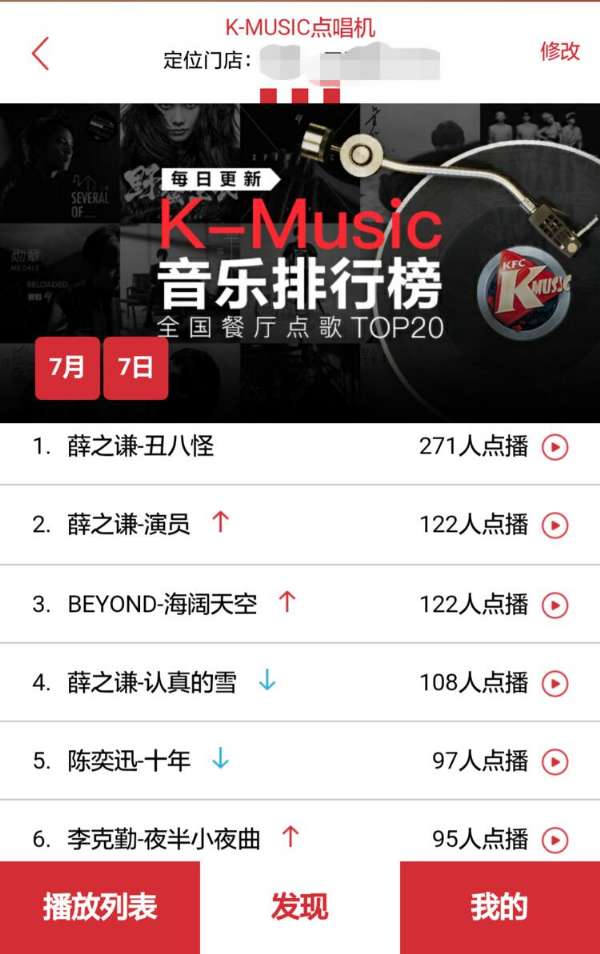 不过,餐厅点歌功能中能点的歌曲有限,除了肯德基代言人薛之谦和鹿晗的作品以外都是些比较旧的歌。为了让消费者对这个点歌功能更感兴趣,肯德基还加入了点歌 TOP 20 榜单,鼓励歌迷为自己喜欢的歌打榜。