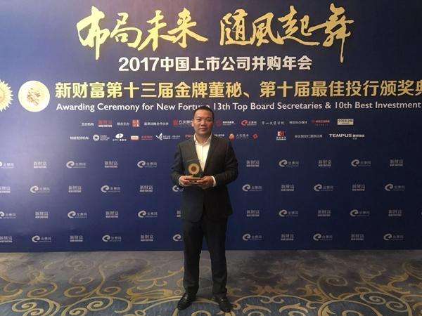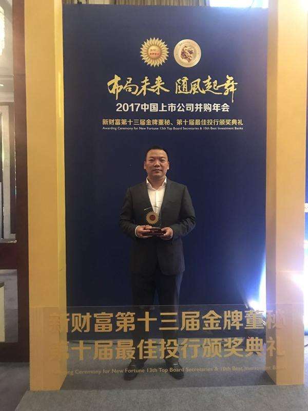 6月29日,由新财富举办的“布局未来,随风起舞”2017年中国上市公司并购年会暨新财富第十三届金牌董秘、第十届最佳投行颁奖典礼在深圳举行。在今年的资本圈年中盛宴中,天音控股董秘孙海龙从3000多家上市公司董秘的角逐中脱颖而出,荣获“新财富金牌董秘”奖项。