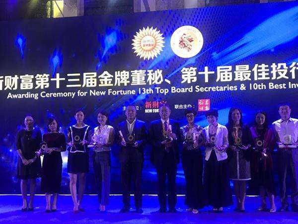 天音控股董事会秘书孙海龙(左五)获颁『新财富金牌董秘』奖杯