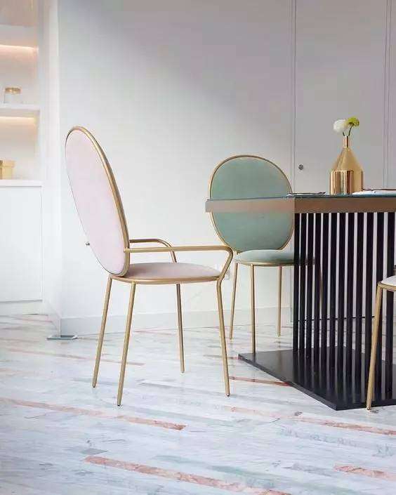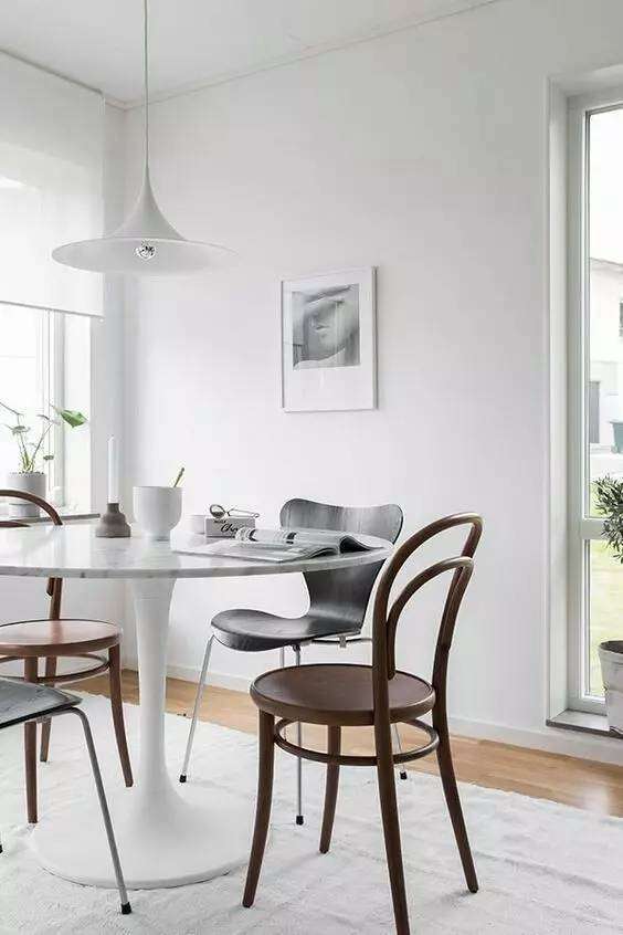 由此可见,你家就餐区域的「搭配」,遵照这个原则:「以靠背椅为主+其他类型的椅子」。