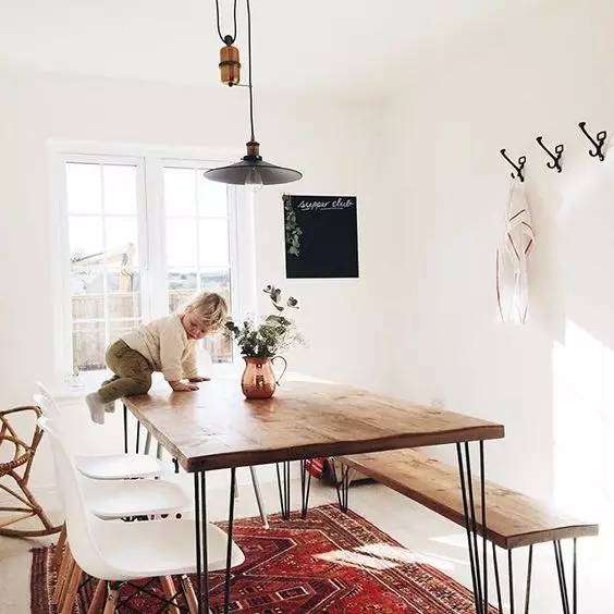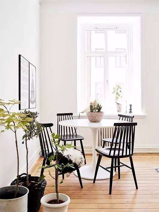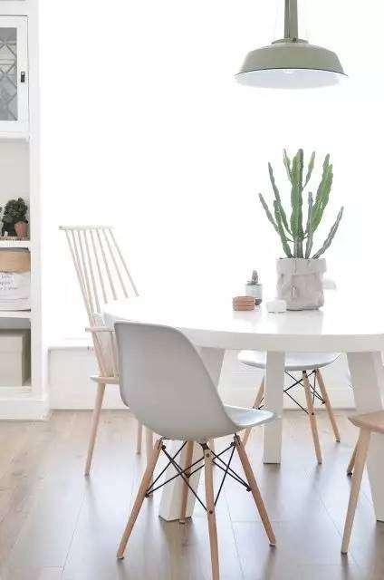 只要不要上面马爸爸的那样的全套好了。哪怕淘张旧的实木桌,再像下面这样配上白色温莎椅,效果也比上面的“清奇”画风好很多好嘛!