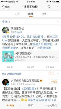 6月30日晚,老戏骨王劲松做客红豆Live,参与“我想跟你配”大型连麦公益配音活动。在直播中,王劲松与主持人和粉丝互动聊天,畅谈对拍戏的看法和感受,同时还与粉丝连麦对戏,再现《军师联盟》中荀?与曹操经典对白。不少网友表示,王劲松不仅演技在线,配音水平也是相当高。