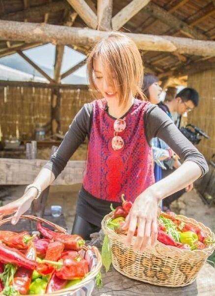 黄磊关心的问赵丽颖能不能吃辣椒,吃货赵丽颖笑的合不拢嘴回答到”我就是来吃辣椒的“,吃货的样子十分可爱。