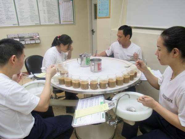 在东莞雀巢咖啡厂的质量监控体系中,还有一环叫做:杯品,即品尝员品尝产品并给出质量的判定。多名品尝员需要长期对不同批次的产品进行品尝判断,确保产品品质始终如一。