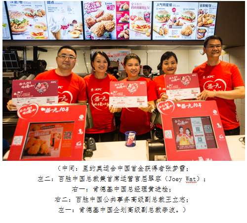 原标题:百胜中国总裁携手奥运冠军在肯德基餐厅助力“捐一元”