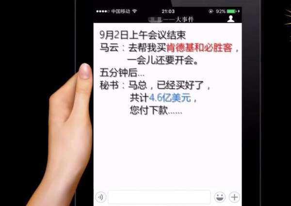 关于马云收购肯德基还有这样的段子:9月2日,杭州G20安保严格,外卖都不让送了,马云饿了。马云:去帮我买份肯德基和必胜客,一会儿还要开会。五分钟后,秘书:马总,已经买好了,共计4.6亿美元,您付下款...... 当然这只是个段子!