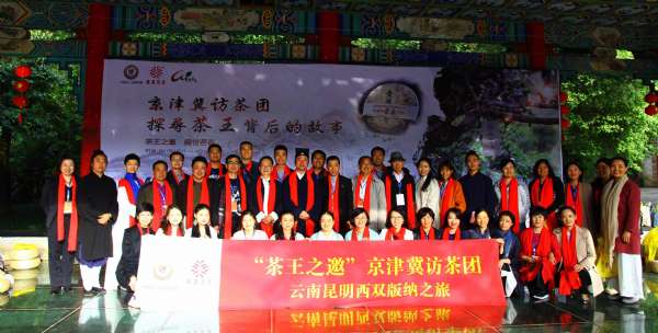 中国茶人发展联盟协同京津冀著名茶人尹纪周、赵曙光、肖思学、王霞、邓卫东、葛英华、邹雁、王爱、林艺梅、冯宇艳、汪丹丹、潘春红、穆婷婷、任英丽、唐怀素、李艳霞等共计36名代表,组成“‘茶王之邀’京津冀访茶团”,在2017年春茶采摘之际,4月17至23日开启为期一周的云南昆明西双版纳问茶之旅,探访“普洱熟茶王”——葳盛茶业旗下“爱随茶香”背后的故事。云南昆明茶叶行业协会会长刘益成携常务副会长们亲自迎接并致欢迎辞,对这次问茶之旅的意义给予高度评价。