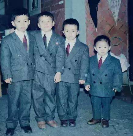 右二男童为王俊宏,小时候穿着利郎西服和哥哥、堂兄弟合影
