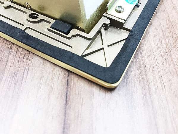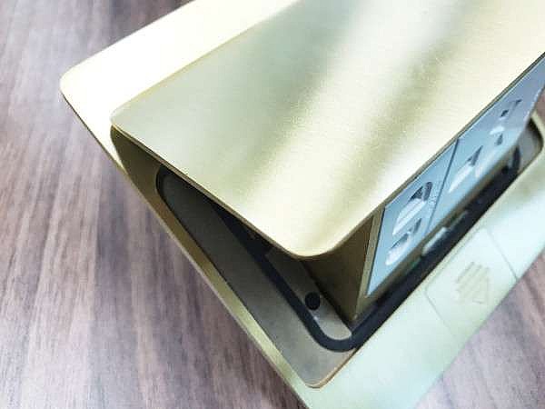 这款插座的材质为抛光拉丝铜合金,光泽自然,只是静静的安放在那里就显出整个开关的低调大气。整个开关的边缘薄至3mm,确保与地面贴合严密,美观稳固。