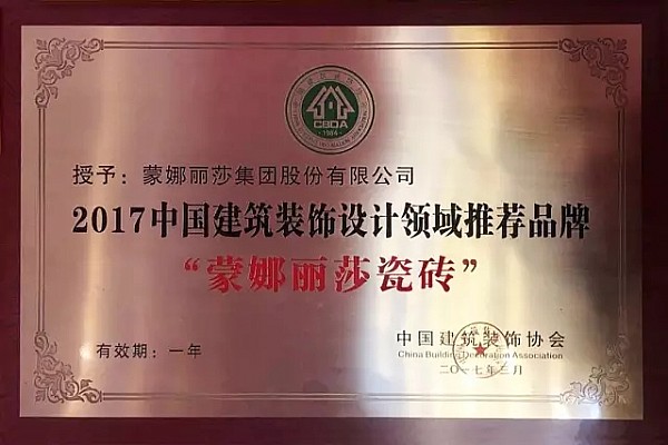 在艺术设计领域,蒙娜丽莎一直前瞻瓷砖潮流趋势,紧跟市场发展动态,满足消费者需求,并与意大利顶尖设计公司进行合作,积极投入产品研发设计中,在2017年3月更是荣获得“中国建筑装饰行业设计领域推荐品牌”的荣誉称号。