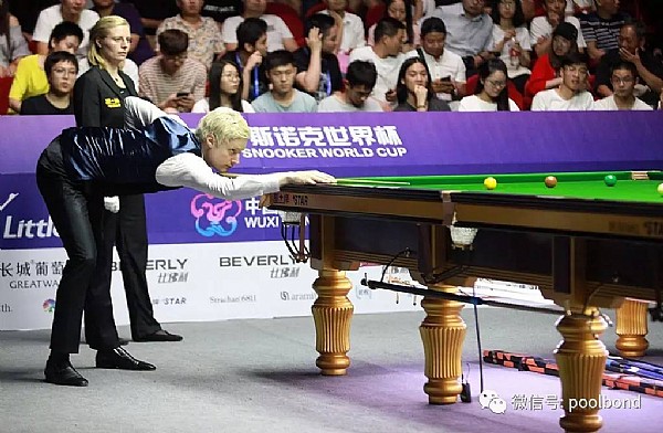 TOP147.com无锡讯2017年斯诺克世界杯小组赛最后一场比赛在7月7日晚结束,英格兰主将特鲁姆普冲击147分无果,14颗黑球已经让所有观众激动不已。
