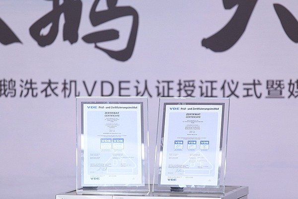 去年6月,素有电气界“诺贝尔”奖的VDE将两大至高的认证证书——“水魔方高效节能”技术认证和“BLDC电机20年使用寿命”品质认证颁发给了小天鹅,小天鹅借此填补了全球的洗衣机领域在VDE认证上的空白。