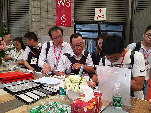 冠军磁砖豪华的展位、独特的系列新品和热情的接待,立刻吸引了大批客户驻足。展会上,冠军磁砖携手新浪家居联手打造“爱健康·给你一个会呼吸的家”墙面健康新品发布会,号召在都市喧嚣与忙碌奔波的时间里,为爱人打造一个会呼吸的家,尽享森林呼吸!