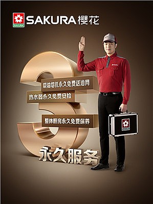 除以上三大功能点外,还不得不提的是,只要购买SAKURA樱花的吸油烟机,就可享受“永久免费送油网”服务,确保油烟机始终拥有大吸力。此项服务,再加上热水器永久免费安检、整体厨房永久免费保养,构成了SAKURA樱花业界驰名的“三永久”服务。