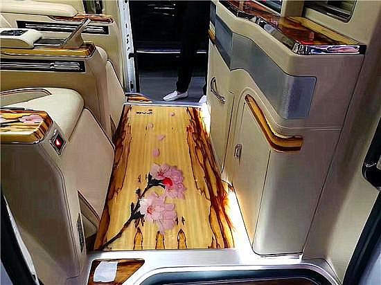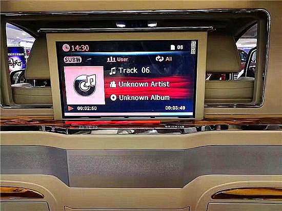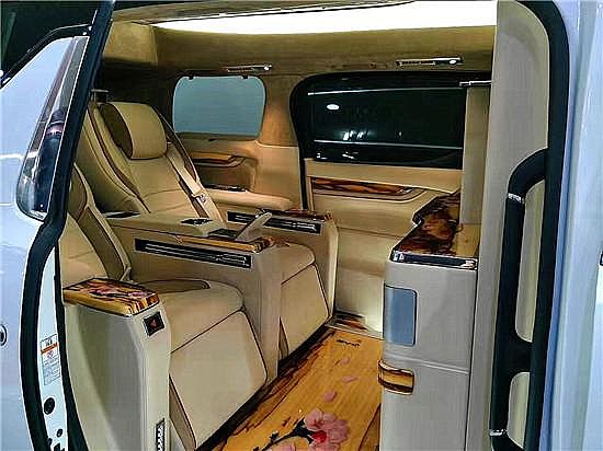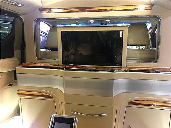 蒙娜丽莎后排配备两个航空座椅(加热、通风、气动按摩),德国进口内置调光器阅读灯。中间配备24寸高清液晶升降电视,日本健伍影音系统,220v电源接口USB多功能连接口,智能隐藏储物柜,智能隐藏式奢华冰酒柜,电子雾化窗帘。
