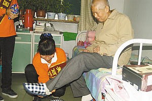 ■北国超市北国店的爱心使者走进养老院进行慰问,为老人带来了冬暖品等。本报记者 秋凌 摄