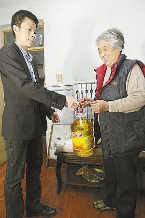 ■19日,九牧王股份有限公司石家庄分公司为桥东10户贫困家庭送去了爱心款、米面油等。本报记者 张海强 摄