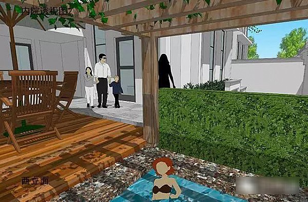 这个小院宽35米,长25米,建筑开间28米,进深15.米,一层设有车库、储藏室,占地面积360平米,属于架空层;二层设有门厅、客厅、厨房、餐厅、老人房、公卫等,建筑面积265平米,还有大大的空中花园,三层主卧带洗手间,2间次卧及阳台。