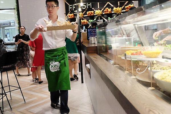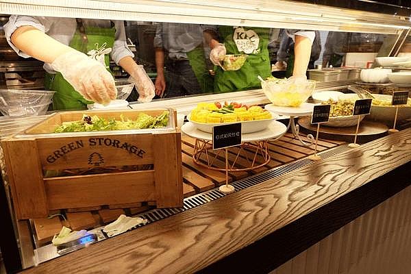 K pro采用的开放式厨房,可以看到所有沙拉的制作过程,食材新鲜看得见。