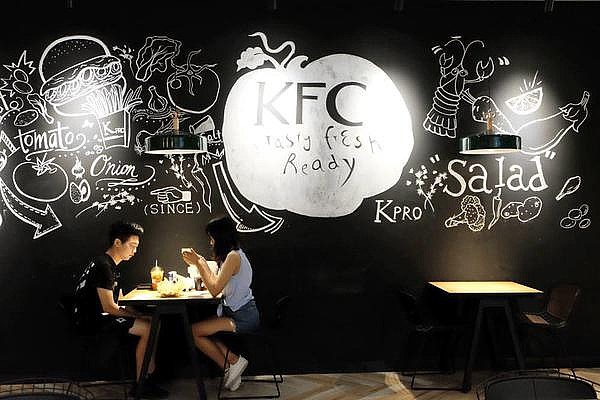 整个餐厅用黑铁做了很多隔断,透明玻璃空间感很强,涂鸦墙都一点没有往日肯德基的作风。