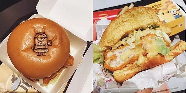 麦当劳这次把小黄人的logo都印在了汉堡皮上,可以说不买不是麦当劳脑残粉了。把爆浆鸡排放进汉堡里可以说是首创,但是口感并没有宣传的那么好,没有褒奖的感觉,不过并不难吃。鸡蛋还是挺嫩的~