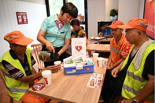 肯德基与爱为邻高温下献上爱心一杯水