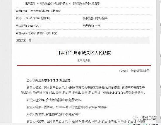 《消费日曝》了解,7月5日,甘肃媒体报道,该案由兰州中院日前作出终审判决:郑某、杨某等8名被告因侵犯公民个人信息罪被判刑,其中郑某被判有期徒刑1年6个月,缓刑2年,罚金4000元;孙某因情节轻微犯侵犯公民个人信息罪,被免予刑事处罚。