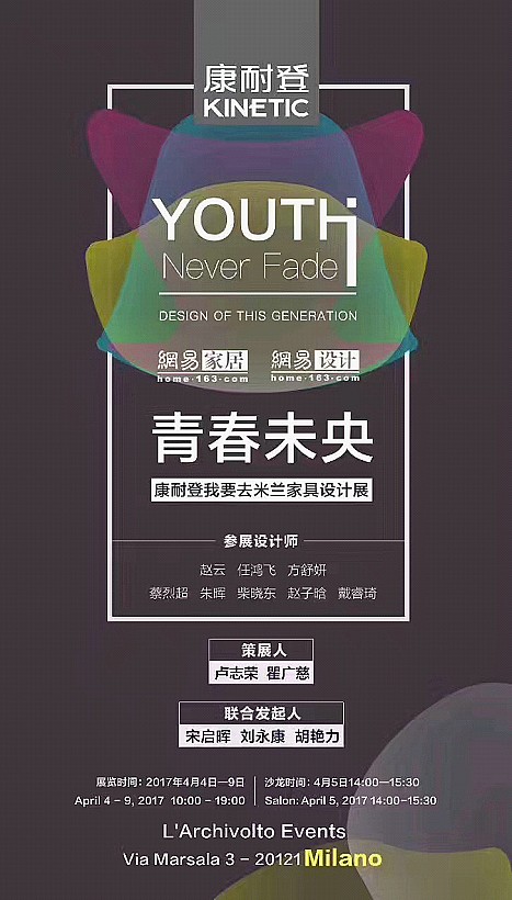 今年的米兰家具展将于4月4号正式拉开帷幕。而此次米兰展,康耐登家居成为中国家具企业唯一的参展品牌。而酝酿了长达2年时间的“青春未央——我要去米兰家具设计展”活动,也在此时同步登场。4月,康耐登联手「世界杰出华人设计师」得奖人卢志荣和中国当代著名雕塑家瞿广慈策展以及网易设计,重磅推出【青春未央】我要去米兰——家具设计展,助力中国青年设计者让世界看见。