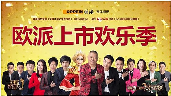 洞察了目标消费者爱看综艺节目的媒介接触习惯之后,欧派绑定了东方卫视的《欢乐喜剧人》第三季和《笑傲江湖之笑声传奇》两档喜剧类综艺IP,打造“欢乐季”。其实这个嫁接是非常巧妙的,荧幕上的欢声笑语都是属于每个有着快乐家庭的普通人,欧派就这样轻而易举地通过高收视、好口碑的综艺节目让大家产生情感共鸣。\u00A0