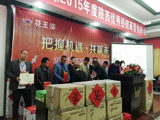 陕西花王漆团队在会上进行了振奋人心的团队展示,坚定的眼神、响亮的口号、蓬勃向上精神面貌,都鼓舞着经销商们的士气,坚定了与花王漆携手的信心。会议期间,公司还对多位2014年优秀经销商做了表彰,奖励丰厚大礼,以期望他们在2015年能够收获更好的业绩。优秀经销商们还在会上做出了成功经验的分享,让参会人员获益匪浅。