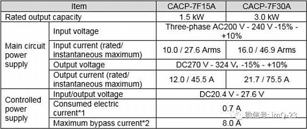 和市面上所有集成驱动电机产品一样,在将 Σ-7F 集成到设备系统时,也必须使用与之配套的直流(母线)电源。已经发布的 CACP 电源分为 1.5 kW 和 3.0 kW 两个功率级别,输出电压: DC 270~324V (-15% ~+10%),输入电压:三相 AC 200~240V(-15% ~+10%)。这就是说,目前的 Σ-7F 的输入电压只有三相交流 220V 级别,如果在国内或出口欧洲的设备上使用,仍然需要配备变压器。