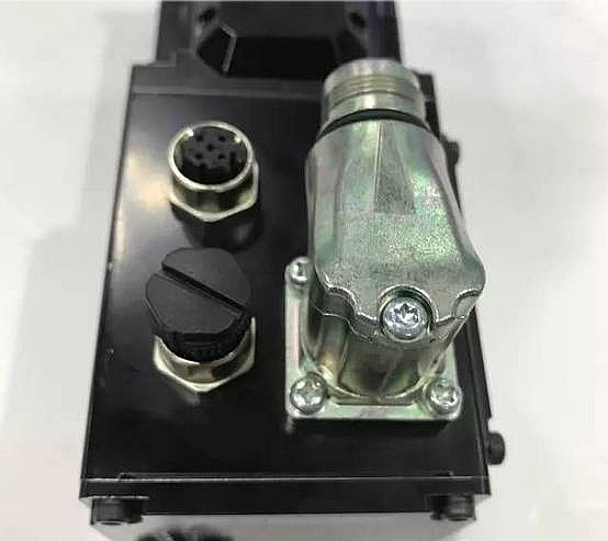 电机尾部集成的驱动器侧面,是 Σ-7F 的电气连接端口。有没有注意到,安川在此款电机上采用了高防护等级的金属连接器,这在传统的日系伺服产品中并不多见,目测这和其内部集成了驱动放大单元有很大关系。
