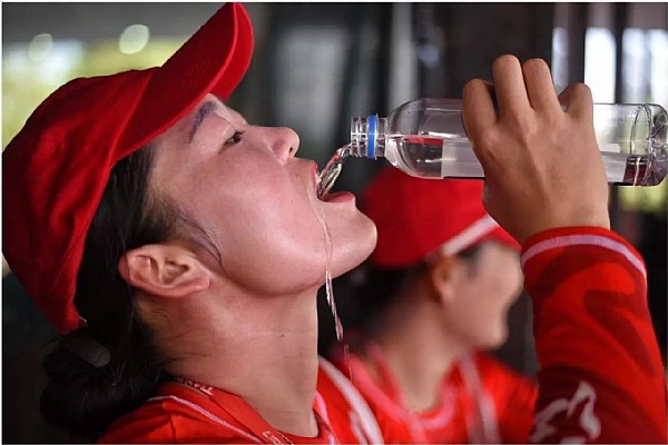 场下待机中,天气太热,为保持身体最佳状态,出尽浑身解数。