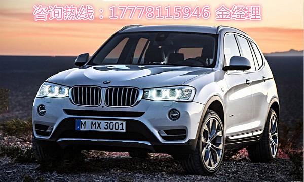 【车讯网 报道】\u00A0 近日店内16款宝马X3现车到店,最新报价优惠,多款配置颜色可选。进口宝马X3前脸部分改动明显,除了保留宝马双肾样式进气格栅以外,其他地方都存在很多革新亮点。丢掉了老款那小气的前脸后,全新宝马X3看上去显得很有霸气..店内车辆关单、商检齐全\u00A0,当日提车,全国购车皆可办理分期付款,欢迎到店试驾选购,活动期间可报销两人路费,前三十名购车者可赠送万元大礼包。详情咨询热线:177-7811-5946 \u00A0金经理