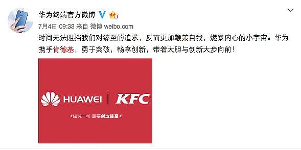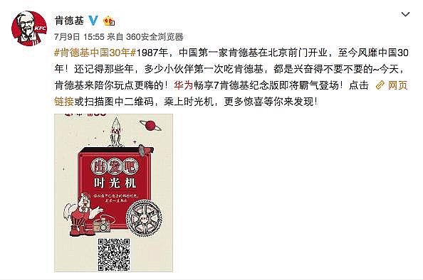 这不,就在这个月,华为宣布要与肯德基联手推出入华30周年纪念品。
