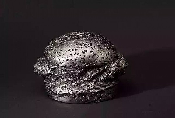 ??这汉堡是一颗400岁的真陨石,通过三位艺术家的改造,成了一个十分逼真的模型。肯德基的天空情缘不只是说说而已啊。
