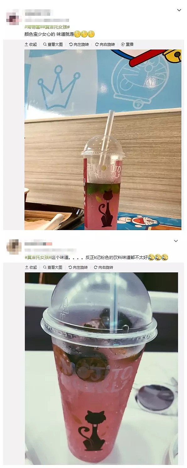 饮料整体为粉色色调,是一款青金桔+新鲜薄荷叶+树莓风味朗姆酒的无酒精鸡尾酒特饮,中文名为莫吉托女孩。该饮料一经推出,购买过的顾客对其态度褒贬不一。