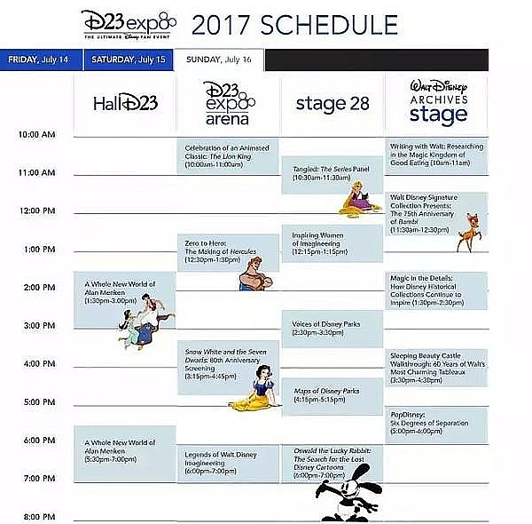 D23 Expo历时三天,会有作品回顾展、最新游戏发布、音乐演出、明星见面会、迪士尼乐园消息发布、电影工作室及旗下影业公司信息发布等等一系列活动。粉丝们不仅可以购买独家周边、与最爱的公主合影,还能近距离接触明星,并第一时间欣赏到电影独家预告片段。