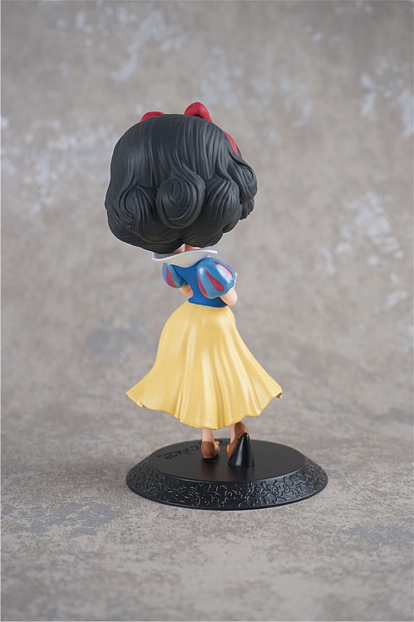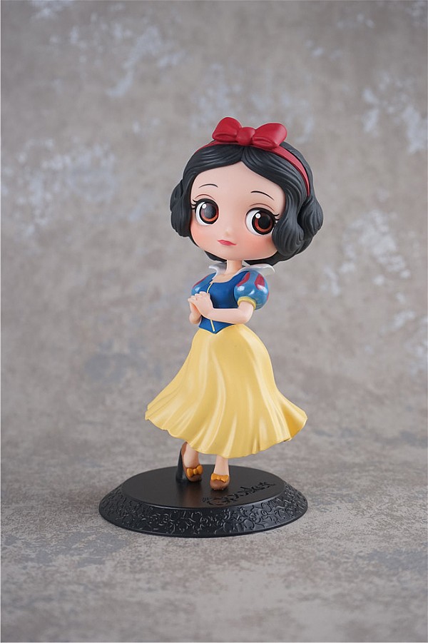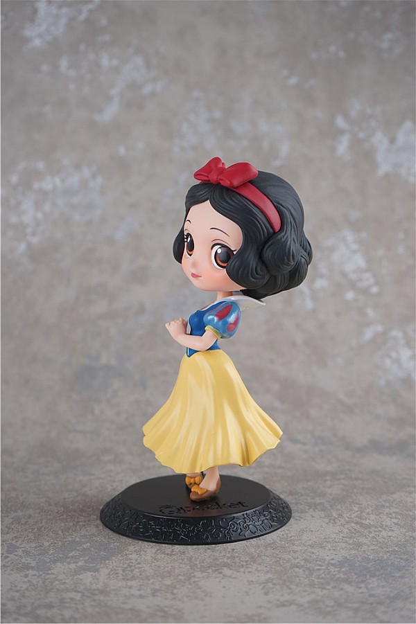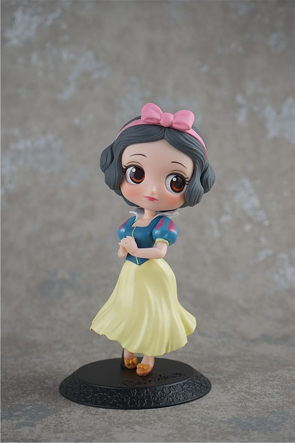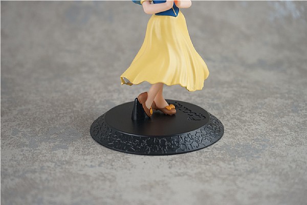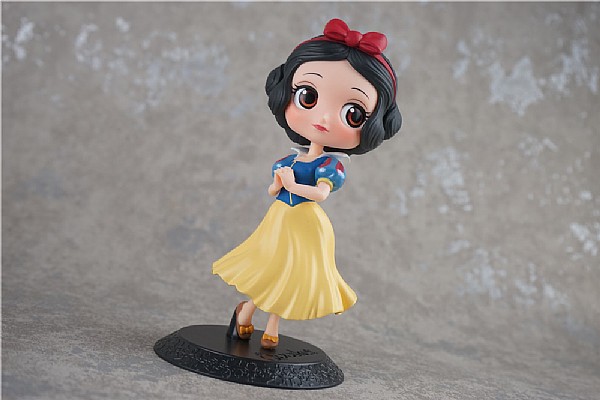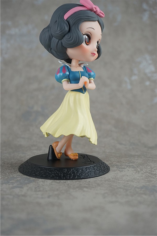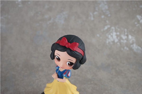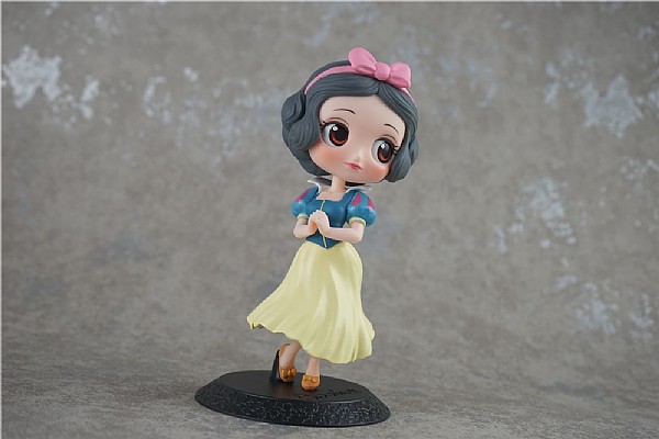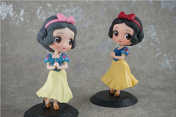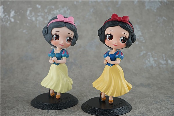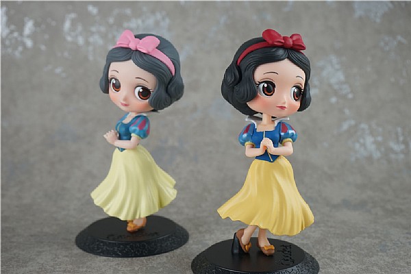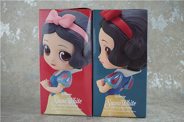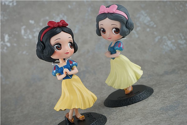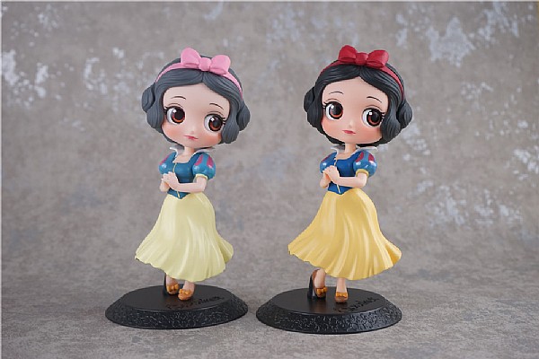 在炎炎夏日里终于等来了白雪公主!此作是流行在欧洲大陆多年的民间童话故事,后被格林兄弟编入童话书,才得以在全世界流传开来。虽然最近十几年间,对白雪公主的故事有了更多版本,和一些令人惊悚解读,但这并不影响白雪公主给儿童留给下善良美丽的印象。 回忆过童年之后,就开开始测评吧!先看看外包装。正色版的包装是森林花丛为背景,并配上鲜艳诱人的红苹果,就差七个小矮人站一圈了~ 异色版的包装上出现了魔镜,映出白雪公主的背影,小细节做的很到位。很想对着镜子问,魔镜,魔镜,谁是世界上最美丽的人? 下面拆开看看实物!左边是异色版白雪公主,右边是正色版白雪公主。和其它公主一样,异色版饱和度降低,有种站立在晨雾中的朦胧感。 在童话故事中,明确介绍了白雪公主的外貌,发如乌木,肤似白雪,唇红如血。这款手办很好的让颜色呈现了出来,又没有过度。发色乌黑,雕刻优美,发尾的处理尤其好,一个卷发包包头就立体呈现了。皮肤也没有过白,还是肤色的样子,脸颊处的红晕更是显得娇羞可爱。 \u00A0 躯干部分有一个扭动,很好的展现出了身体的线条感,脚步动作设计巧妙,颇具动感。裙摆也随着飘摆,十分生动。值得一提的是,裙子里面并不是贝儿公主那般堆积褶皱,而是设计了一个长款的南瓜裤,很符合白雪公主的个性。【贝儿公主测评链接】 下面是异色版的白雪公主。总觉得蝴蝶结换成粉色不太衬她的头发。 两款放在一起的比较就更加明显了,正色版的颜色更抓人一些。 以上就是白雪公主的测评~补充一些关于白雪公主的小趣事,迪士尼电影版的形象原型师美国演员珍妮.盖诺,发型也是后卷的包包头。白雪公主的也是历史上第一部动画长篇,迪士尼耗时3年才公开放映。