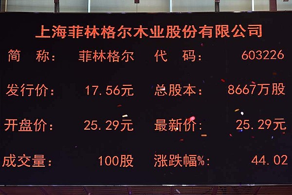 原标题:地板商菲林格尔在沪上市 市值高达21.92亿元