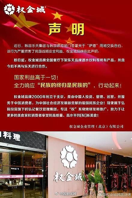 (原标题:汉拿山、权金城等餐厅纷纷发声明:我们百分百是中国的)