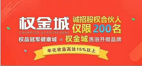 近年来人民币超发规模达到历史最高,直接导致资产价格不断上涨,本币对内贬值不断,实际存款利率为负,物价指数水涨船高。居民投资渠道成本增加和信息不畅导致风险提高。可喜的是在互联网金融快速发展浪潮下,众筹模式得到越来越多的投资人的认可,与此同时,众筹模式在各个行业悄然流行开来。权品冠军健康成是权品权金城沐浴连锁升级品牌,就是由人人投股权众筹网络服务平台通过响应互联网的号召,尝试互联网金融新模式的有益探索和创新,并在12年老店升级重装开业之际,出让30%的股份,进行股东招募,让更多的顾客,权金城的爱好人士可以通过这个项目参与到企业的经营管理中来,通过将这个有15年发展历程的健康产业旗舰企业,在互联网+模式下进行深入发展和拓展。