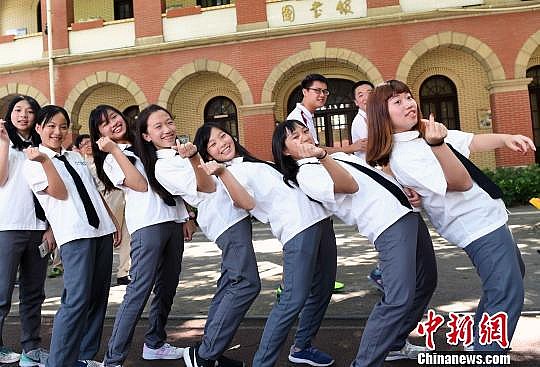 参加第十四届榕台青年夏令营的马祖高中女学生在福州高级中学校园内合影留念。记者刘可耕 摄