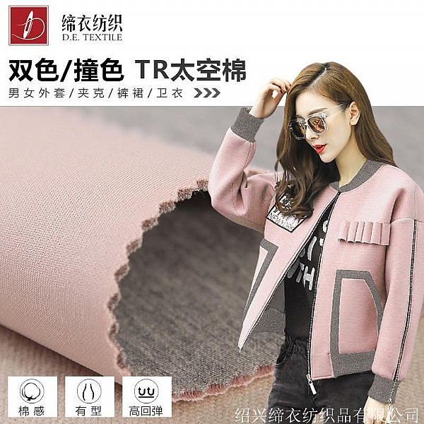 厂家直销粗针单面绒面料、男装女装服装面料 欧标双色麻灰TR 3D太空棉弹力针织染色太空层棒球服卫衣女装面料 现货供应 纯色棉布料 棉弹染色斜纹面料 女装童装连衣裙衬衫用布 165G/M2 40SCVC奥代尔拉架布/男装面料/女装面料