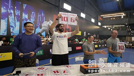 今天的赞助商冠名互动环节精彩不断。首先进行的是东风日产NBA 5v5扣篮挑战赛,担任评委的卢比奥甚至为有佛山林书豪之称的钟显超的精彩暴扣举起了两张牌子,10分和六分总共“106”分的高分。在接下来进行的佳得乐一投百万中投挑战赛也紧张刺激,龚文峰以2.26秒的极佳成绩获胜,晋级上海站决赛。