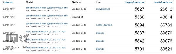 数据显示,i9-7960X的单核心分数为5238分,多核心分数为33672分,这与同为SkyLake-X架构的i9-7900X在数据库的分数相差不大,要知道i9-7900X“只是”一颗10核心20线程的处理器。