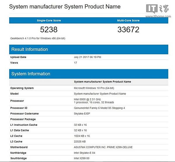 经分析后目前可以认为,在跑分上无法达到其应有水平的原因在于测试处理器的主频为2.5GHz,据推测应该是一款工程版CPU,而正式版的7960X在主频上至少应该达到3.0GHz以上。
