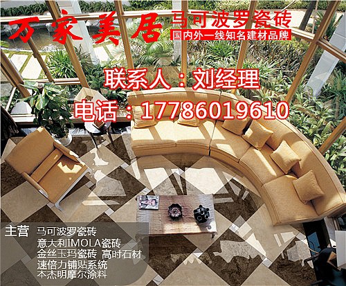 秉承“为万家,处处做最jia”的经营理念,十几年来,万家公司积极扩大对外合作,与众多设计院、建筑公司、装饰公司、房地产公司等建立了紧密的新型合作关系,“马可波罗”品牌成为万科地产指定品牌,增强了企业在业界渗透能力和综合影响力。成为中国一流的建材流通企业是公司的长期发展目标!!!瓷片