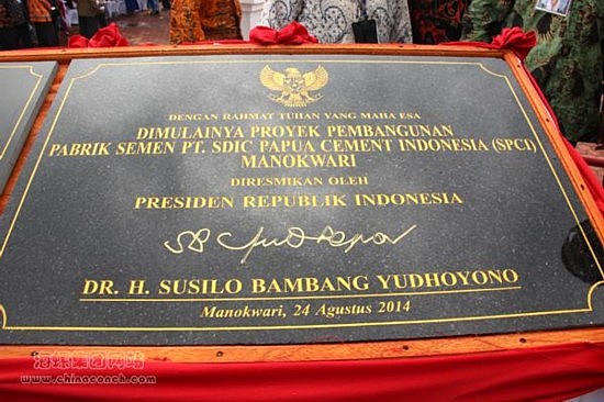 项目坐落于印尼东部地区西巴布亚省马诺夸里县,规划投资建设2×3200T/D新型干法水泥生产线及配套设施,年产水泥300万吨。项目一期建设1×3200T/D生产线,配套建设矿山、码头、燃煤电厂及相关生产生活辅助设施,年产水泥150万吨,时任印尼总统苏西洛亲自为项目开工庆典题词,希望项目成为巴布亚岛规模最大、工艺最先进的水泥生产工厂。